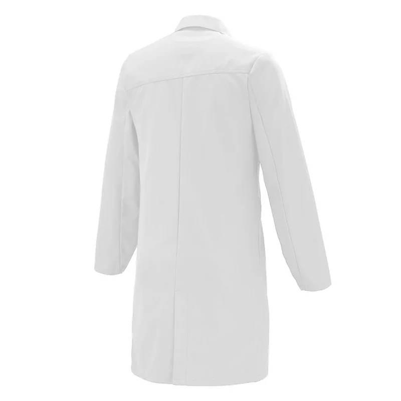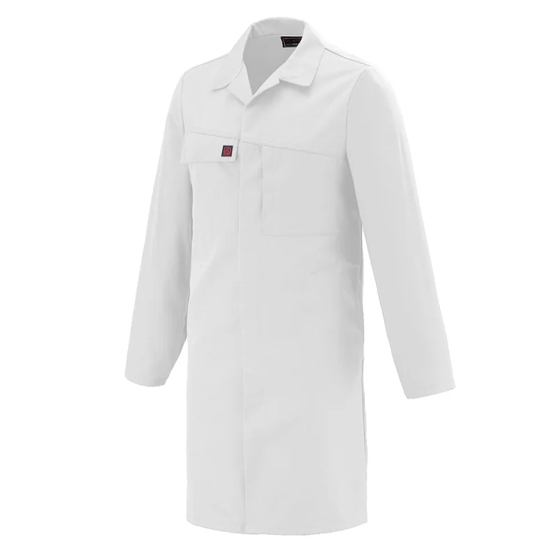 Une blouse blanche à manches longues de la Work Collection Updated Lafont. Elle dispose d’un col transformable, d’une fermeture centrale à boutons pression et de poches au niveau de la poitrine. Elle est conçue dans un tissu sergé en coton majoritaire. La mercerie est tout plastique pour éviter les risques de conduction électrique. Disponible de la taille XS à XXXL.