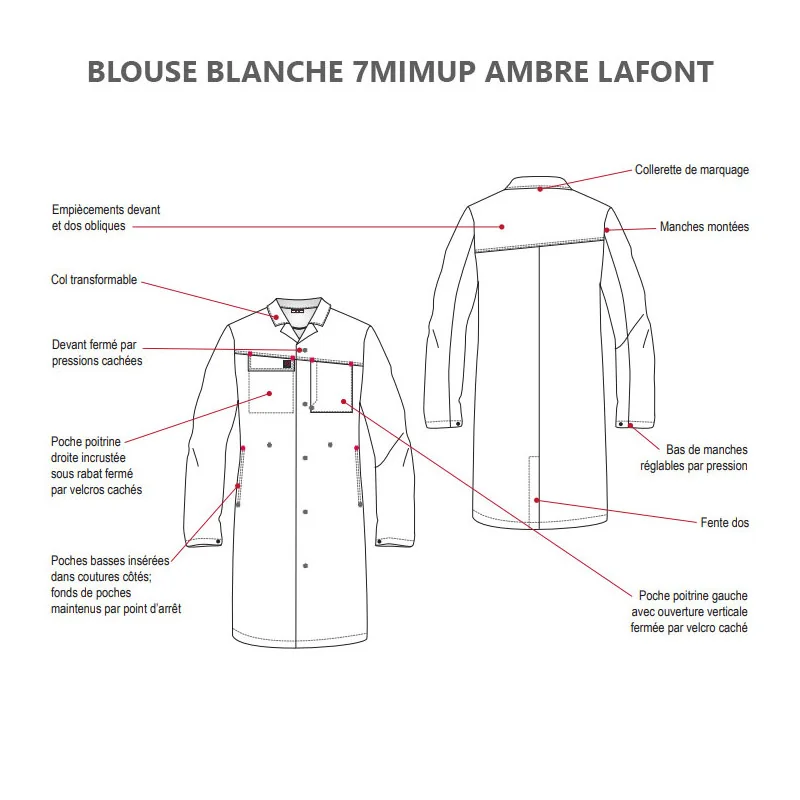 Blouse de travail blanche manches longues Lafont AMBRE