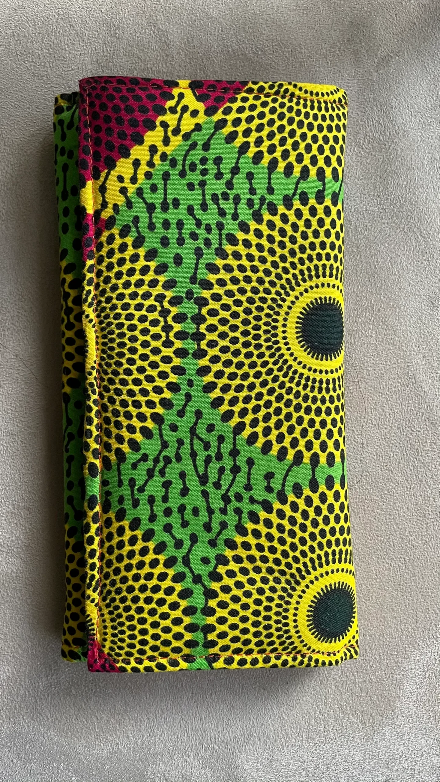 Alliant praticité et esthétique, cette pochette en wax vert et jaune est parfaite pour accompagner vos tenues du quotidien ou vos sorties. Son tissu de qualité et son design africain authentique en font un accessoire incontournable pour un style unique.