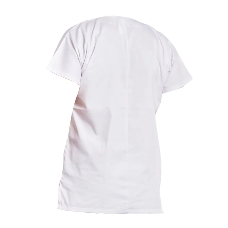 Pour que vous puissiez vous vêtir à moindre frais, PBV vous propose cette tunique médicale blanche avec manches courtes kimono. Confortable et unisexe, elle s’adresse aux femmes et aux hommes du milieu de la santé. C’est une tunique de travail pas cher disposant d’une encolure en V, d’une poche coeur et de deux poches plaquées. Afin de bénéficier d’un vêtement de travail parfaitement propre, la tunique PBV TILY accepte le lavage à 80°C ainsi que le nettoyage professionnel à sec.
